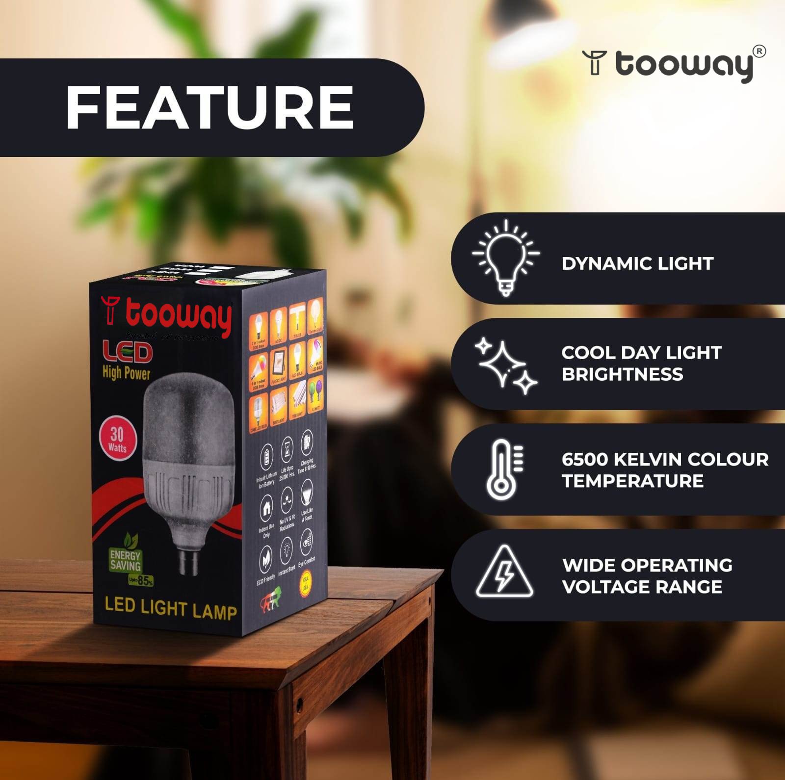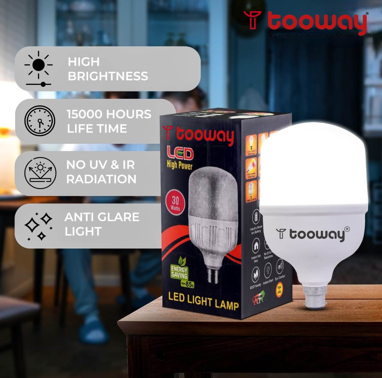 Keep darkness at bay and say hello to brightness as you equip your home with this 30 W bulb from Tooway. This eco and pocket-friendly bulb dissipates low heat and is designed to be durable.