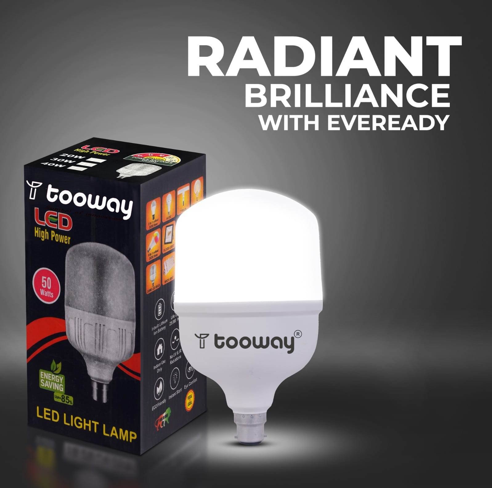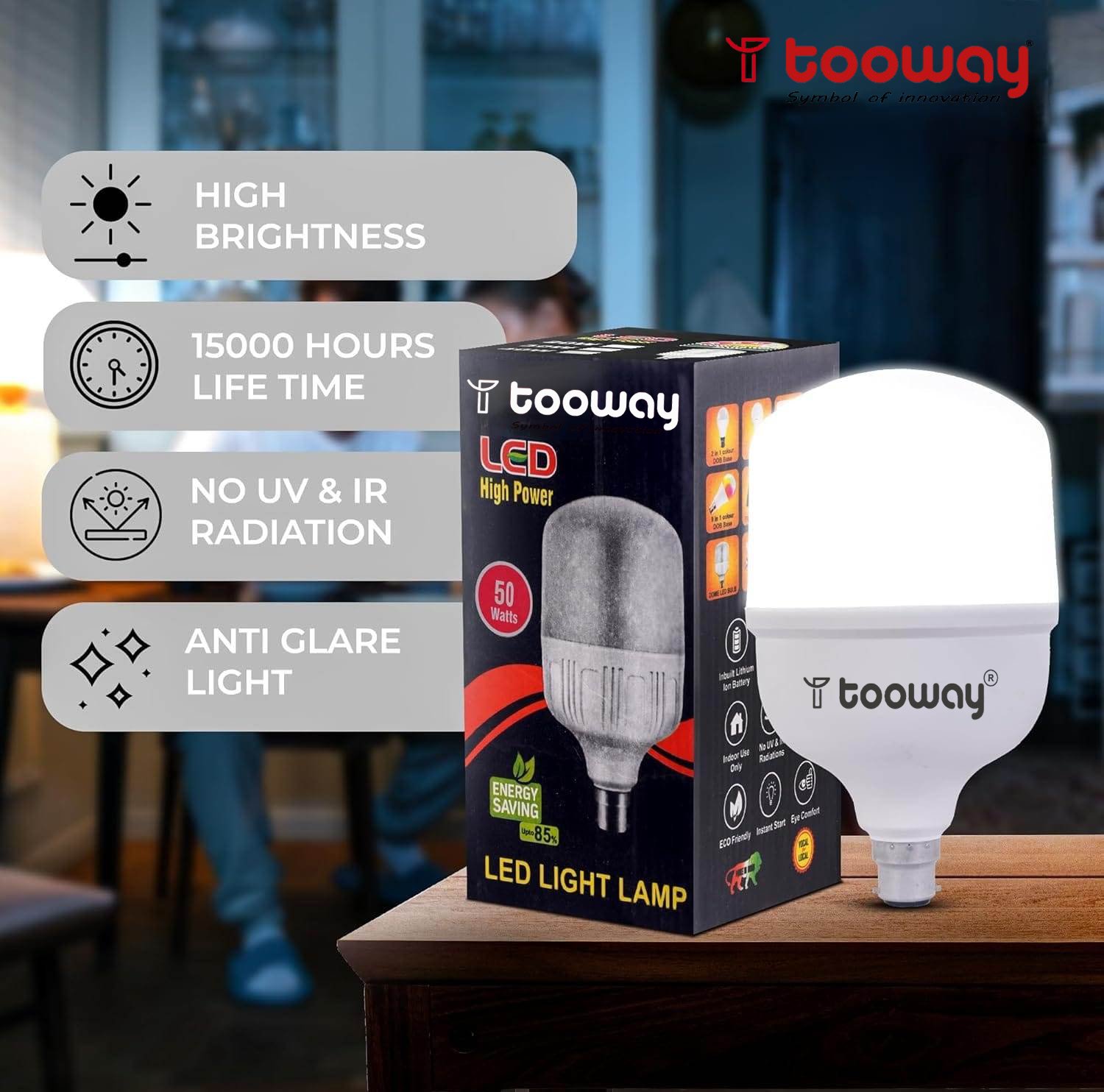 Illuminate your home with the Tooway 50 W Round B22 LED Bulb and let its soothing and comforting light inspire you to be productive. This energy-efficient home appliance features Non Visible Flickering, a Glare Reduction technology, and also, it is Eye Safety Compliant.